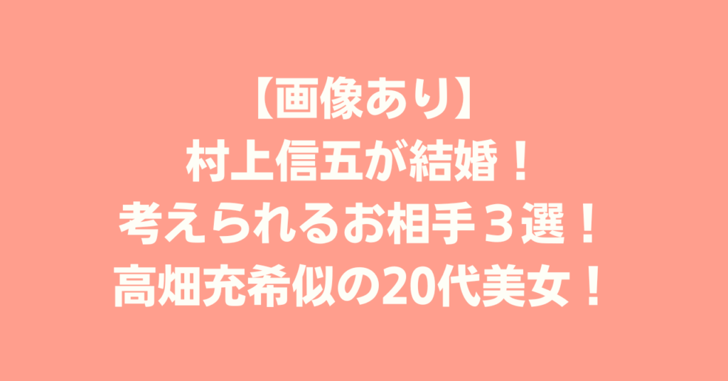 【画像あり】村上信五が結婚!考えられるお相手3選!高畑充希似の20代美女!